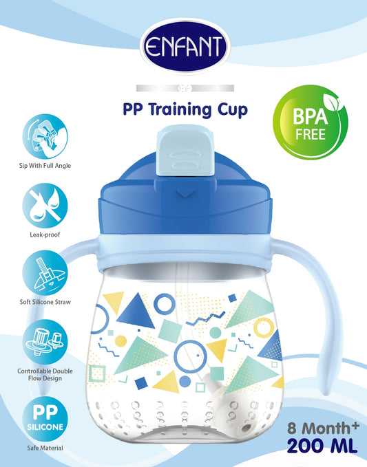Enfant 200ml Drinking Cup Wide Neck PP Training Cup - with Handle and Silicone Straw