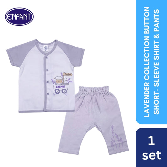 Lavender Collection button Short-Sleeve Shirt & pants with Sheep Design
