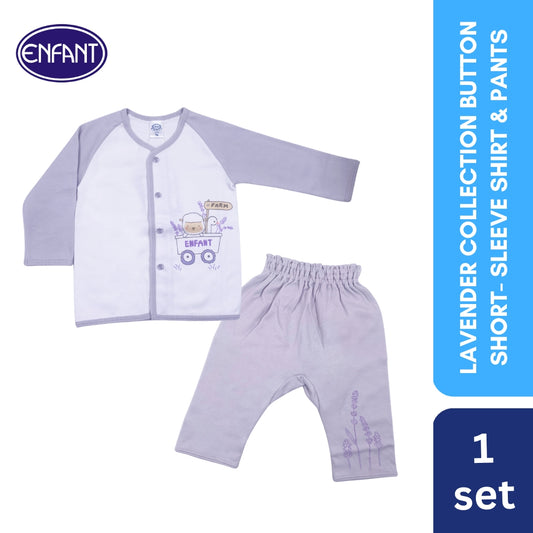 Lavender Collection button Long-Sleeve Shirt & pants with Sheep Design