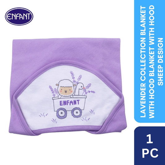 Lavender Collection Hooded Blanket with Sheep Design