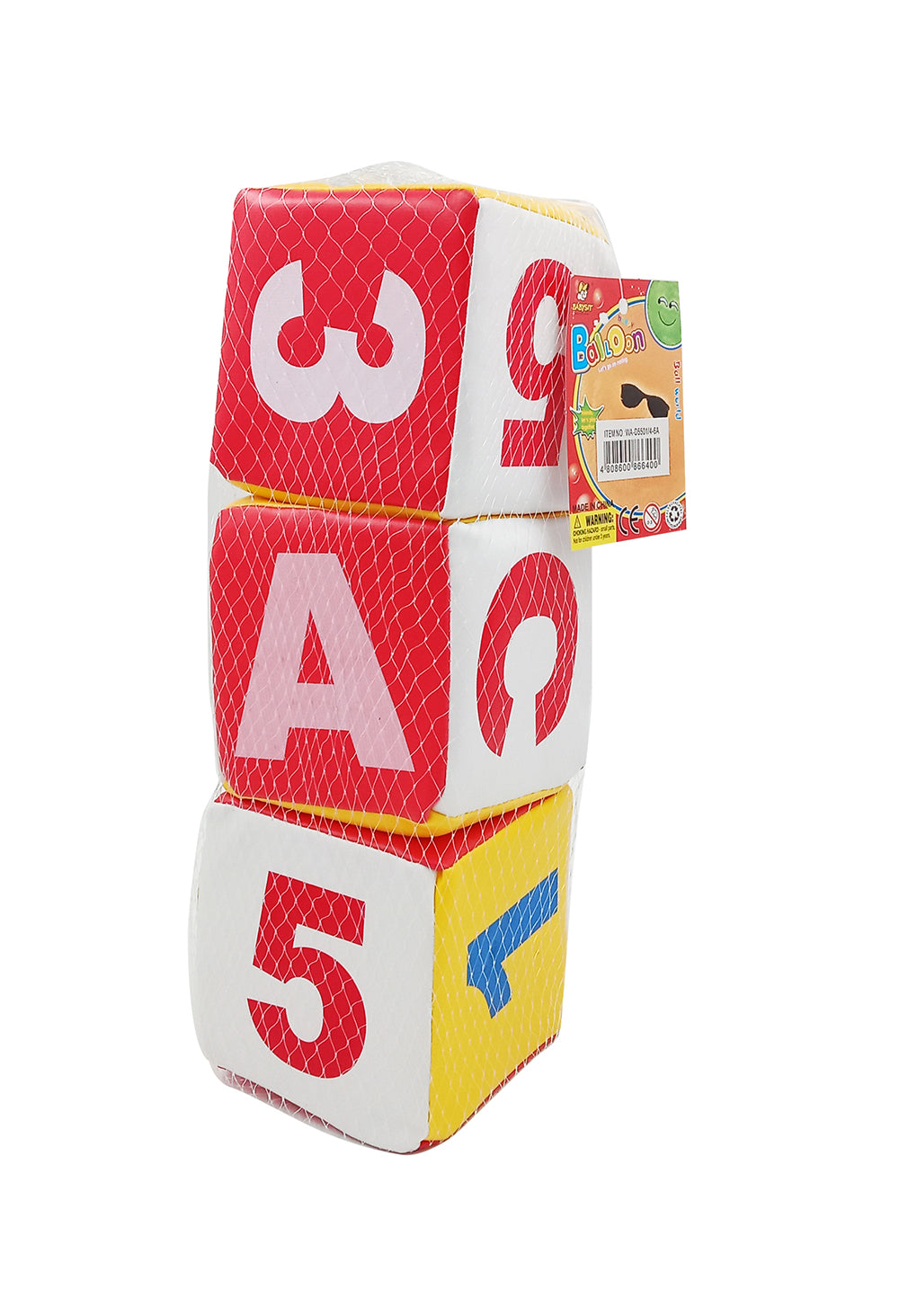 Enfant 4 inch Square Dice Baby Toddler Soft Toy Set with letters and alphabet 3 Pcs